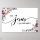 Typography Design with calligraphy and words in black on white background, "All to Jesus I Surrender." Typography design is centred in beautiful, colourful watercolor flowers (colourful illustrative flowers appear in upper left and lower right corners of the design).