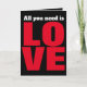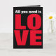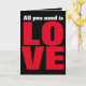 A simple graphic design spells out " All you need is LOVE". This red, white and black typographical card is perfect for most occasions. Inside the card there is an area for you to add your own message