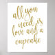 An elegant cutting edge wedding sign, features the text "All you need is love and a cupcake" in a extroverted script font, the glitter texture adds a festive and glamorous touch. The background color can personalized according to your needs and preferences, please contact me if you have any special request.
