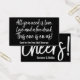 In a casual, modern handwritten script font, I created a graphic overlay that reads, "All you need is love. Love and a free drink. This one is on us!" On the back, in the same pretty type, the graphic overlay reads "Cheers!" Template fields at the bottom were set up using the words "Good for One Free Adult Beverage", on the front, and holding a space for your names on the back. *****PLEASE NOTE that the graphic depicting "Cheers!" was left quite large; I've intentionally allowed the image's text to run outside the "safe" lines. Please note that this was a conscious design decision but if you're concerned about the potential that the text could be cut off a bit in production, please feel free to click for further editing and simply reduce the size of this graphic. Alternately you may certainly reach out to me for assistance! All text is white and the editable background is black which can be changed to any colour you wish. After the seriousness of your special event, some will appreciate the humour of a casual, lighthearted, funny drink coupon. // 62 // Designed by Melody Watson for Paper Muserie.