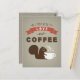 Squirrel enjoys a steaming hot mug of coffee. "All you need is love and coffee." A cool coffee lover's postcard that is customizable for business or personal mailings. Writing side of this postcard features a coffee beans pattern. Visit Jenn's Doodle World for even more original products featuring this cute squirrel.