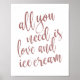 An elegant cutting edge wedding sign, features the text "All you need is love and ice cream" in a extroverted script font, the glitter texture adds a festive and glamorous touch. The background color can personalized according to your needs and preferences, please contact me if you have any special request.