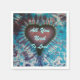 Package of 50 white paper cocktail napkins with the phrase "All You Need Is Love" printed across an image of blue, purple and white tie-dye with a deep purple heart. See matching cloth napkin, cloth placemat, paper placemat and coasters. See the entire Psychedelic 60s Napkin collection in the FOOD/BEV | Linens section.