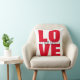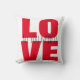 This is a pillow features a graphic design with text. The word LOVE is in big, bold red letters. In the middle "All You Need Is Love" is in black type. On the back of the pillow the design has a black background and "All You Need Is Love" is in white. You can customize the colours.