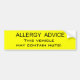 Allergy Advice - this vehicle may contain nuts. Car containing nuts. Warning sign.