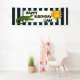 Birthday banner with an alligator and yellow sun on a blue and white striped nautical background. Personalize your text using the spaces provided. If you would like more creative control, use the "Customize It" button to change font, font size and colour. Make it your own.
