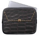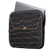 A fashionable statement in a colour that works with many clothing styles, this 10” Laptop Sleeve is designed to look like an alligator envelope clutch bag. The original collage by ZoeSPEAK is made of a chocolate brown alligator texture, with the envelope flap of the clutch purse outlined with a gold band and gold buttons, and a large gold jewellery fastener button closure in the centre.