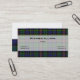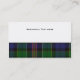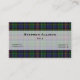 Stylish plaid business card done in the traditional Allison tartan pattern. The front of the card has a black edged semi transparent white band, across the middle of the card, with custom black text. The back of the card is done in white, with a strip of plaid at the bottom, and black text on the white portion. Personalize all the text to suit your needs. Handsome and professional looking business card.