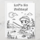 Allons pêcher ! Jolie page de coloriage avec un thème de camping. Un petit garçon pêchant dans un lac entouré de montagnes et d'eau. Idéal pour une école, une maternelle ou une fête d'anniversaire.