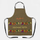 This earthy brown apron has been designed to protect you while you are working in your allotment. It can be personalised with your own name and words, and is decorated with bright, colourful vegetables. It comes in a choice of sizes; small, medium and large.