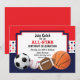Personalize this Allstar birthday invitation with your info. Great for a sports party includes basketball, baseball, soccer and football.