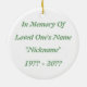 Remember your loved ones with these beautiful ornaments. Add your loved one's name, nickname and birth and death, or use them to acknowledge family members and beloved animals who are still living. Totally customizable!