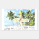 Aloha ! Dream Landscape with a girl inviting us to surfing and have fun, sport, in full freedom. Drawing created with the Computer graphic 3d 2d.