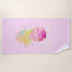 NewParkLane - Fun, Tropical Beach Towel, avec un ananas hawaïen aux aquarelles colorées et audacieuses et à la parties scintillant faux or, et 'Aloha' écrit dans une élégante typographie de script.