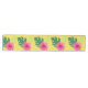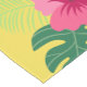 Large pink hibiscus blooms with tropical leaves on yellow background. Aloha!