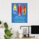Cool island surf art celebrating the spirit of Hawaii and Aloha with three vintage retro surfboards. Whether you are hitting the waves or beach bumming in the sand this Hawaii art is perfect for any island vacation.