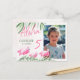 Aloha handwritten style typography script 5 years girl trendy Hawaiian luau photo birthday party invitation featuring hot pink flamingo birds and green tropical leaves. +++++++++++++++++ Suitable for young girls or young women any age summer tropical themed, beach or by the sea birthday parties. ++++++++++++ Easy to personalize on both sides!