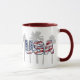 Un imprimé vintage hawaïen de chemise aloha en combinaison avec un drapeau américain pour créer ce graphique encadré de palmiers. Customisez ce design sur votre tasse préférée.