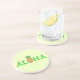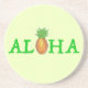 Sandstone coaster features an original marker illustration of a tropical Hawaiian pineapple, forming the O in ALOHA.
