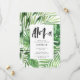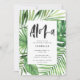 Modern tropical palm leaf watercolor foliage party invitations. Hand painted effect script text. Part of a on trend summer collection. Background colour can be changed.