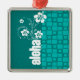 Aloha; Turquoise Squares; Retro Metal Ornament