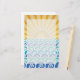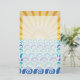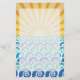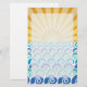 Stationery with design of different shades of blue waves with the sun rising on the horizon.