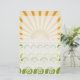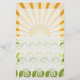 Stationery with design of different shades of green waves with the sun rising on the horizon.