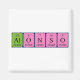 Alonso spelled out as Al O N S O (Aluminum Oxygen Nitrogen Sulfur Oxygen) on a magnet for the scientist in you.