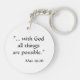 Our Alpaca Keychain with Bible Scripture was made from a photograph of one of our top female alpacas on our farm. I love the fall colours as well as all of the alpacas in the background. This Christian bible verse keychain comes in three different styles. The bible verse on the back of the keychain is from Matthew 19:26 "But Jesus beheld them, and said unto them, With men this is impossible; but with God all things are possible."