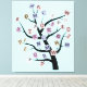 Alphabet ABC tree custom wrapped canvas print, featuring a tree with the alphabet letters on it in purple bluish tones on light blue background. A cute, modern design great for childrens kids room decoration.