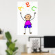 Cute whimsical cartoon drawing of a little boy with letters of the alphabet.