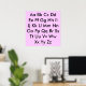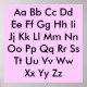 Alphabet chart, pale pink featuring upper and lowercase letters.