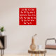 Alphabet chart, red and white featuring upper and lowercase letters.