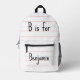 Add a touch of personalized charm to your child's school accessories with our custom school-themed backpack! Featuring a unique English notebook background, this design showcases a notebook page with a beautifully handwritten letter and a child's name, such as "B is for Benjamin." Perfect for both boys and girls, the initial letter and name can be fully customized to make this t-shirt uniquely theirs. Ideal for back-to-school, birthdays, or any special occasion, this backpack combines creativity and individuality in a fun, stylish way. Let your child proudly wear their name and initials with this delightful, personalized school bag design!