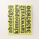 La scie éducative de l'enfant. Un cadeau pour un enfant pour l'aider à apprendre pendant qu'il joue. Cette scie a un design qui comprend l'alphabet ainsi que les nombres. Votre enfant apprendra comme ils aiment mettre la scie ensemble. Jigsaw avec de grandes pièces. Un design avec l'alphabet et les chiffres en noir sur un arrière - plan jaune. C'est une bonne aide pédagogique pour quiconque travaille dans l'éducation.