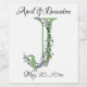 A romantic and elegant design with monogrammed letter J framed by eucalyptus and lavender painted in watercolor.