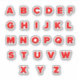 Standard alphabet sticker sheet, letters A-Z. Red color, embossed look.