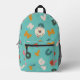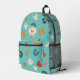 Alphabet soup colourful pattern with encircled monogram, gender neutral backpack in a colour suitable for everyone.