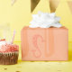 This wrapping paper has a design of a pale orange letters on a field of pale orange.