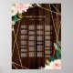 This wedding seating chart features painted watercolor flowers in blush pink, white, and green foliage with a geometric gold frame on a rustic wood print background. For more advanced customization of this design, please click the Customize Further link to change font, size, and color. Matching items are also available.