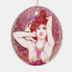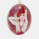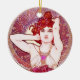 Alphonse Mucha Amethyst ornament. Alphonse Mucha is one of the most famous and celebrated artists of the Art Nouveau period. His gorgeous vintage advertisements and elegant posters continue to enthral modern audiences. Amethyst is a fine example of Mucha’s sense of colour and ornamentation. A beautiful blue-eyed girl sits above purple irises wearing a dark purple dress running her hands through her brown hair. A great gift for fans of Alphonse Mucha, art nouveau, vintage posters, and retro prints.