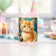 Can Glass featuring a cat in the Art Nouveau style of Alphonse Mucha! This orange kitten with green eyes lovingly looks at you. A thoughtful gift for cat lovers and Art Nouveau collectors!