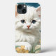 iPhone Case featuring a kitten in the Art Nouveau style of Alphonse Mucha! A white and fluffy kitten with blue eyes poses with yellow flowers. A cute gift for cat lovers and Art Nouveau collectors!