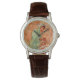 I like the illustrative watch with the lady on it. It is a great reminder that I am blessed and it has a very sturdy leather band. The colors are true and vibrant. Love the color of the Leather also. Very nice.