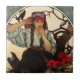 Alphonse Mucha Moravian Teachers choir tile. Lithograph poster from 1911. Czech artist Alphonse Mucha is regarded as one of the great masters of Art Nouveau. His theatre posters are particularly beautiful. This poster features a young Moravian girl sitting in a tree beside a bunch of geraniums. A crow sits behind her. A beautiful gift for fans of Alphonse Mucha, art nouveau, and vintage gothic posters.