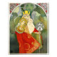 Alphonse Mucha Sokol Festival print. Czech painter Alphonse Mucha created some of the most beautiful posters and advertisements of the art nouveau movement. This particular work was created for the sixth Sokol Festival and features a beautiful young woman wearing a gold ornamented red dress and floral crown. She holds a collection of wreaths in her right hand and an intricate sceptre in her left. Behind her is depicted a beautiful woman holding a hawk and solar disc. A great gift for fans of Alphonse Mucha, art nouveau, and vintage posters and advertisements.