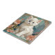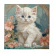 Tile featuring a white cat in the style of Alphonse Mucha! This blue eyed fluffy kitten poses with pink flowers and blue blankets. A fabulous gift for cat lovers and Art Nouveau collectors!