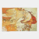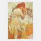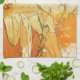 Alphonse Mucha Summer kitchen towel. Oil painting on canvas from 1896. Throughout his career, Czech artist Alphonse Mucha frequently painted allegorical depictions of the seasons. This 1896 version of Summer is from a complete four seasons set and features a beautiful young woman with light brown hair leaning on a vine by the river side as she dips her feet in the water. She wears a thin white gown and large red flowers in her hair. A beautiful gift for fans of Alphonse Mucha, art nouveau, and vintage prints.