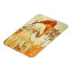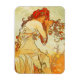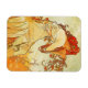 Alphonse Mucha Summer magnet. Oil painting on canvas from 1896. Throughout his career, Czech artist Alphonse Mucha frequently painted allegorical depictions of the seasons. This 1896 version of Summer is from a complete four seasons set and features a beautiful young woman with light brown hair leaning on a vine by the river side as she dips her feet in the water. She wears a thin white gown and large red flowers in her hair. A beautiful gift for fans of Alphonse Mucha, art nouveau, and vintage prints.