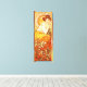 Alphonse Mucha Topaz canvas poster. Oil painting on canvas. Czech artist Alphonse Mucha frequently painted allegories, and Topaz is from a series depicting gemstones as beautiful women. The painting features a young beautiful young woman wearing a deep topaz dress standing in from of an ornate jewelled background. A great gift for fans of Mucha, Art Nouveau, and vintage prints.